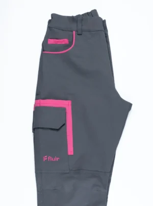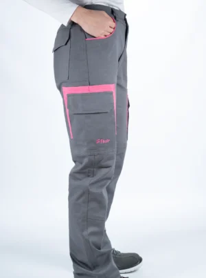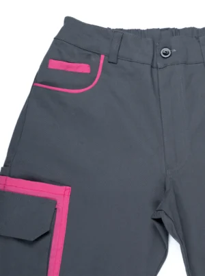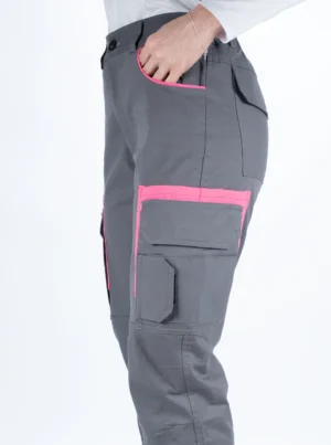 Pantalon Cargo en colores combinados Gris-Rosa, está confeccionado en gabardina de 8 onzas con spandex.